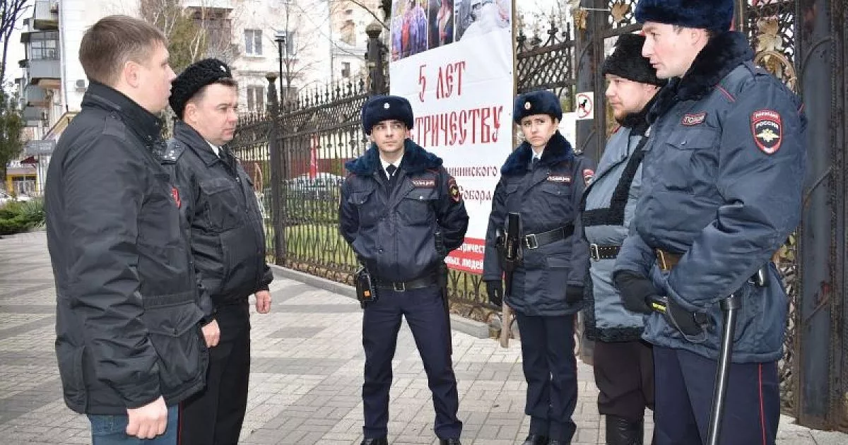 В рождественские праздники член Общественного совета при городском УМВД, командир казачьей дружины Екатеринодарского районного казачьего общества Игорь Гончаров проверил порядок несения службы сотрудниками краснодарской полиции во время проведения праздничных мероприятий в православных храмах краевого центра.