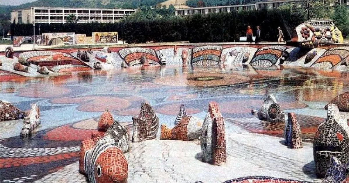 Уникальный бассейн с фонтаном был создан в 1973 году Зурабом Церетели. Большая и мелкая чаши ранее наполнялись водой. В них расположены разные морские обитатели - рыбы, морские коньки, морские звезды и черепахи. Дно бассейна, а также фигурки животных покрыты мозаикой из венгерской смальты. Площадка удостоилась разных премий и стала визитной карточкой Сочи.