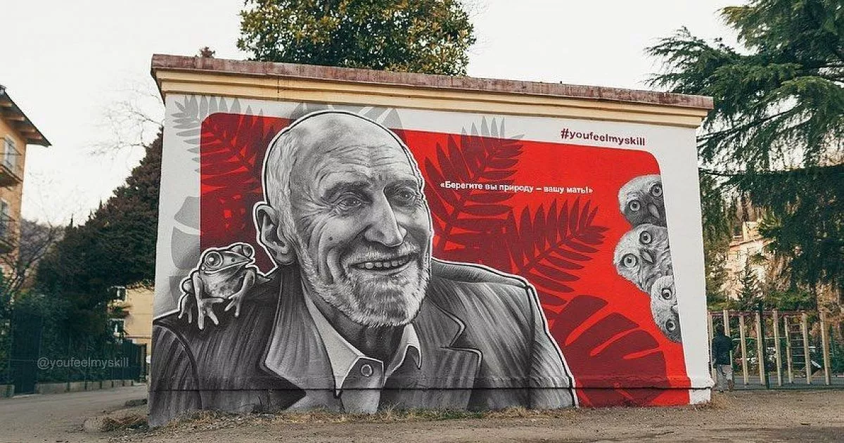 - Герой нашей новой картины не нуждается в представлении! Многие знают его с самого детства, а его голос стал визитной карточкой передачи «В мире животных». Николая Николаевича мы планировали нарисовать очень давно и даже разработали композицию на фасад девятиэтажного дома. Но события сложились иначе и сейчас он обосновался в Хосте! - написали в Instagram авторы граффити - Youfeelmyskill.
