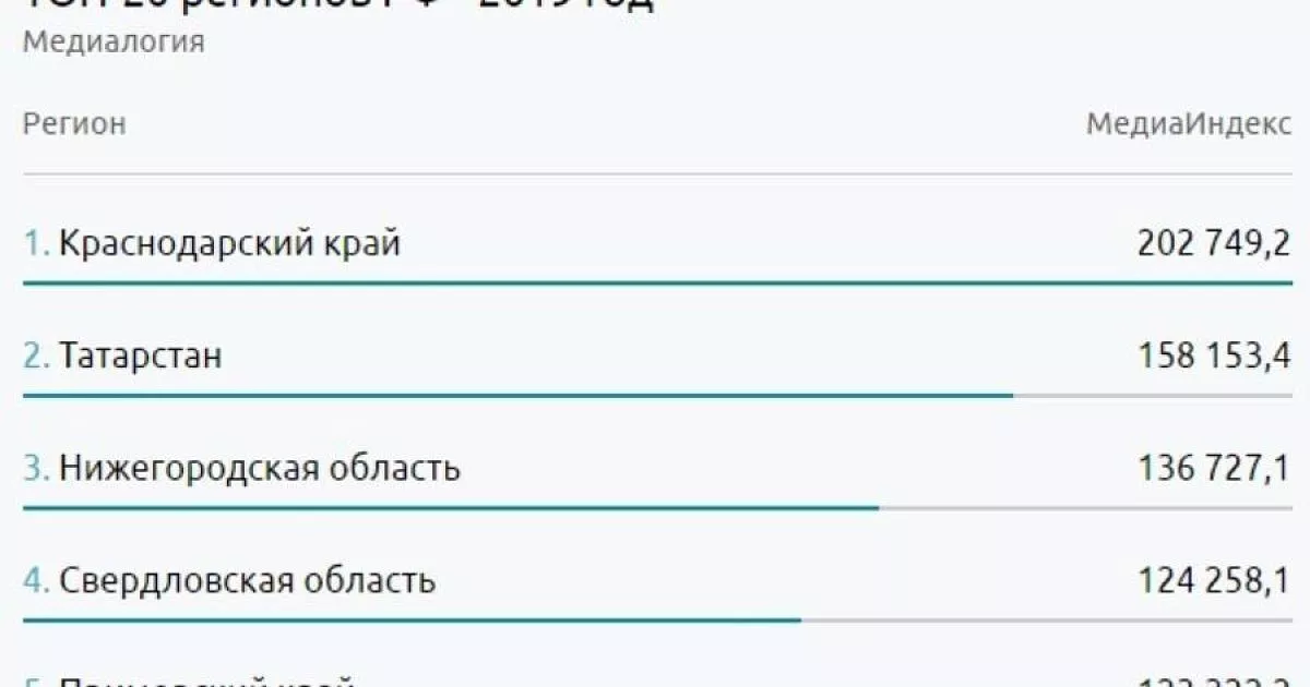 Лидерами медиарейтинга стали Краснодарский край, Республика Татарстан и Нижегородская область.