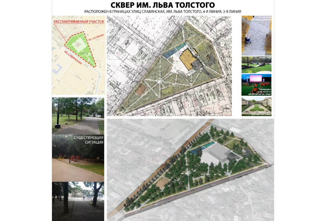 Также во время встречи представили предварительный эскиз сквера имени Толстого по улице Славянской.