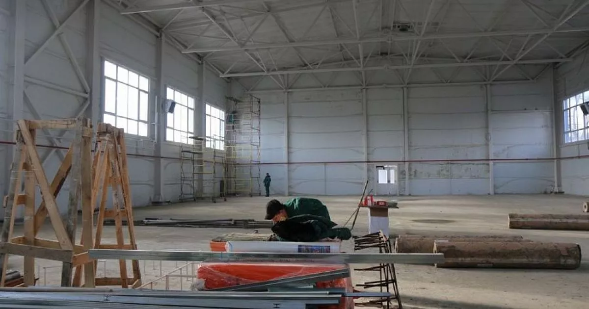 Уже идут работы по внутренней отделке, устройству внутренних и наружных инженерных сетей, электроснабжению и вентиляции. Завозятся материалы для укладки спортивного покрытия.