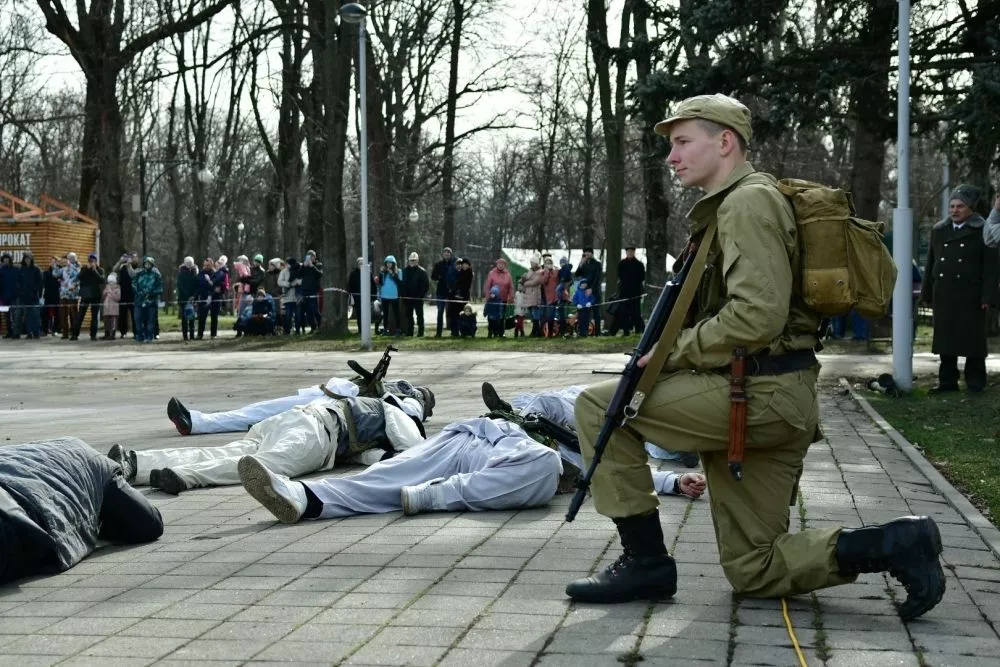 Состоялась и военно-историческая реконструкция. Участники подростково-молодежного клуба реконструировали эпизод боя советских спецназовцев с противником, напавшим на блок-пост, сообщает пресс-служба городской администрации.