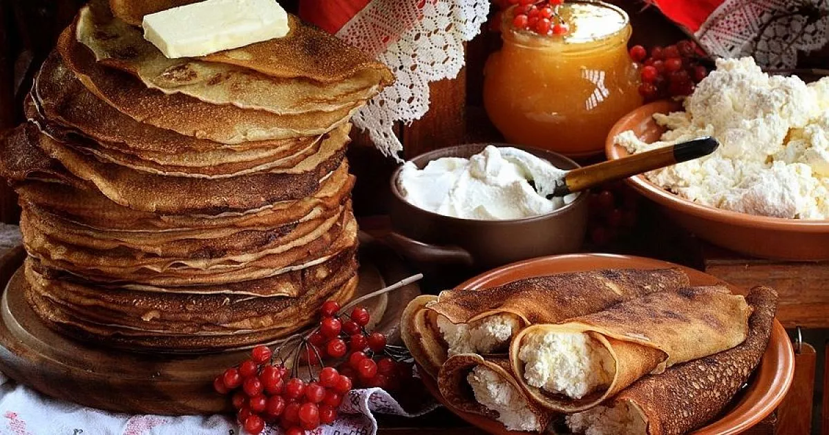 Блины, которые принято есть на Масленицу в России — достаточно жирный и калорийный продукт, поэтому наиболее подходящей начинкой для них может быть нежирная красная рыба или ягоды.