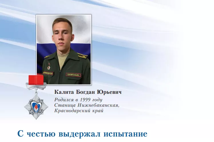 Двадцатилетний курсант IV курса Краснодарского высшего военного училища имени С.М. Штеменко Богдан Калита в августе прошлого года оказал помощь раненому в драке мужчине, после чего помог полицейским поймать преступника, сообщает пресс-служба краевой администрации.
