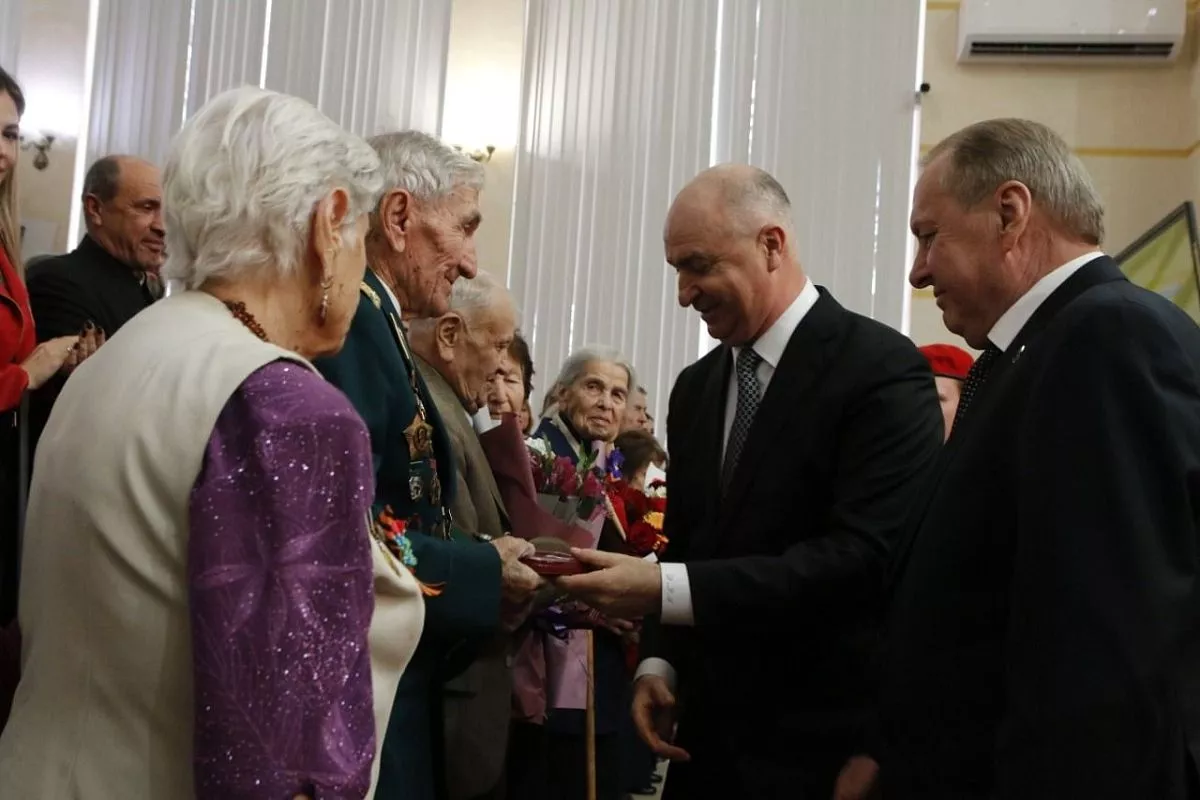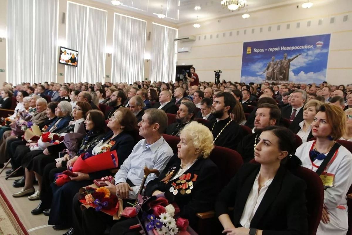 В первых рядах в зале – бывшие малолетние узники и труженики тыла. К ним перед началом мероприятия со словами благодарности обратился глава Новороссийска Игорь Дяченко. Он пожелал им здоровья и вручил памятные медали в канун 75-й годовщины Великой Победы. От имени губернатора края поблагодарил всех ветеранов за Победу вице-губернатор Василий Швец.