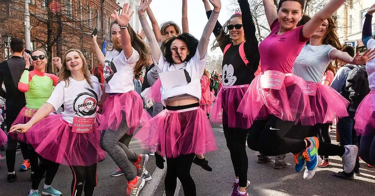Забег начался на Красной от дома № 20. Девушки, которым еще на старте подарили по яркой розовой юбке-пачке, добежали до улицы имени Горького, а потом развернули обратно. Здесь в исходной точке бегуний ждал еще один подарочный пакет с памятной медалью плюс горячее кофе.