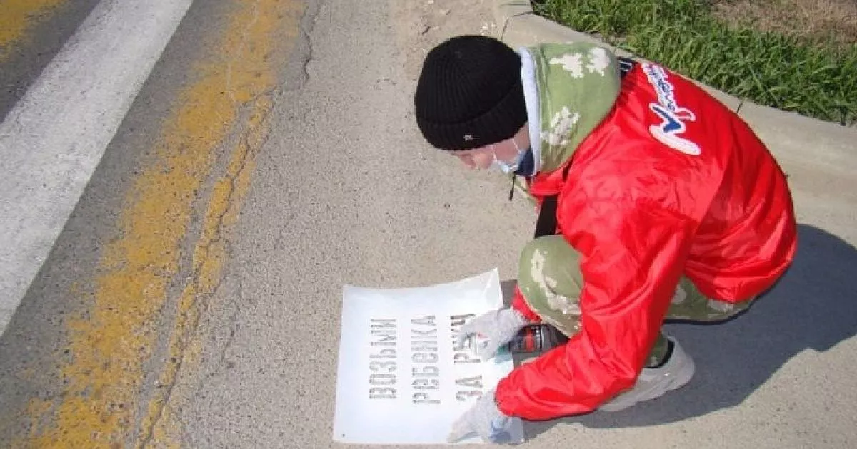 Участники акции с помощью трафаретов и красок нанесли на асфальте перед пешеходными переходами надписи: «Сними наушники», «Возьми ребенка за руку», «Убедись в безопасности перехода». Эти рекомендации нацелены на профилактику и предупреждение дорожно-транспортных происшествий с участием пешеходов.