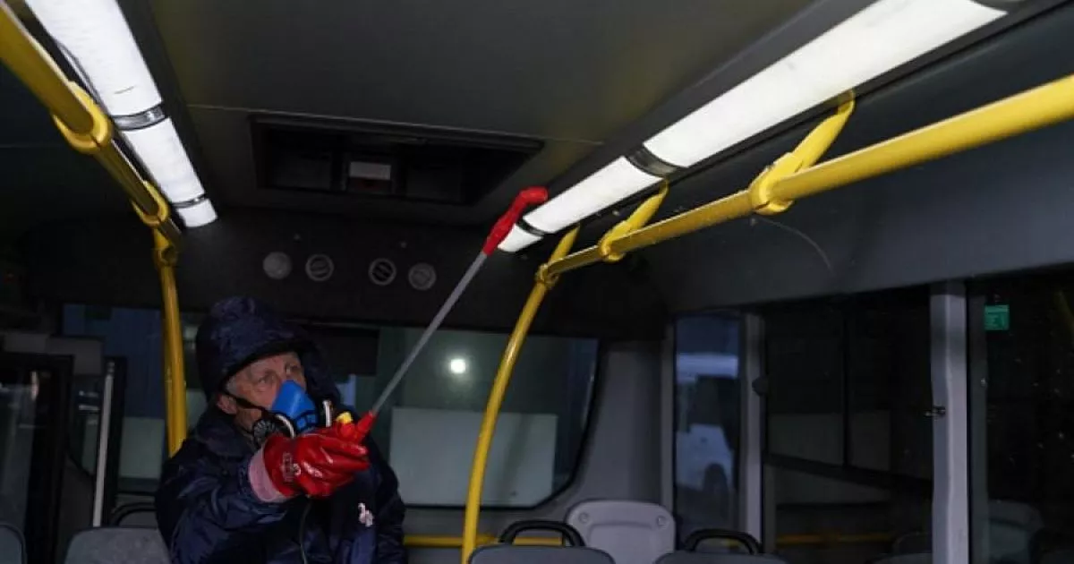 В салонах общественного транспорта дважды в день обрабатываются поручни и ручки сидений, кроме того, на перерывах автобус проветривается.