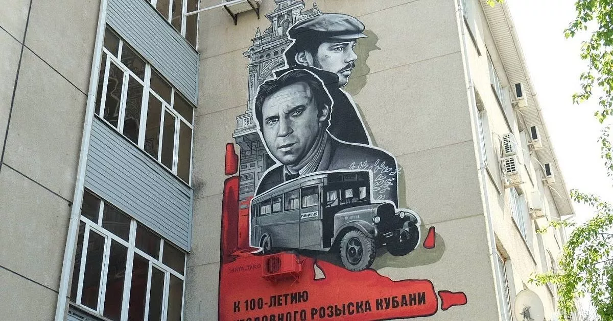 Как ранее сообщали «Кубанские новости», арт-объект с изображением известных актеров легендарного фильма «Место встречи изменить нельзя» создала городской художник Таня Тако. Рисунок 7 на 5 метров украсиил административное здание регионального уголовного розыска, расположенного на улице Суворова, 50.
