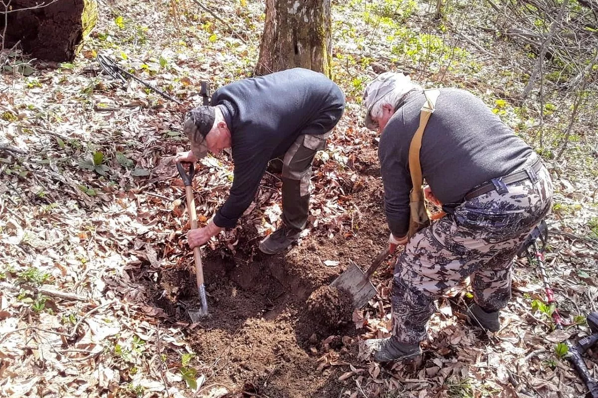 - Одна из групп проводила обследование оборонительных позиций в восточной части Каратянского хребта в районе села Гойтх. Уже во второй стрелковой ячейке были найдены останки бойца РККА. С красноармейцем так же обнаружены фрагменты разбитой от взрыва каски, трубка от полевого телефона, пряжка, складная трофейная саперная лопатка. Множественные фрагменты полевого кабеля говорит о том, что солдат до последнего мига своей жизни обеспечивал связь, - сообщили в пресс-службе «Кубаньпоиска».