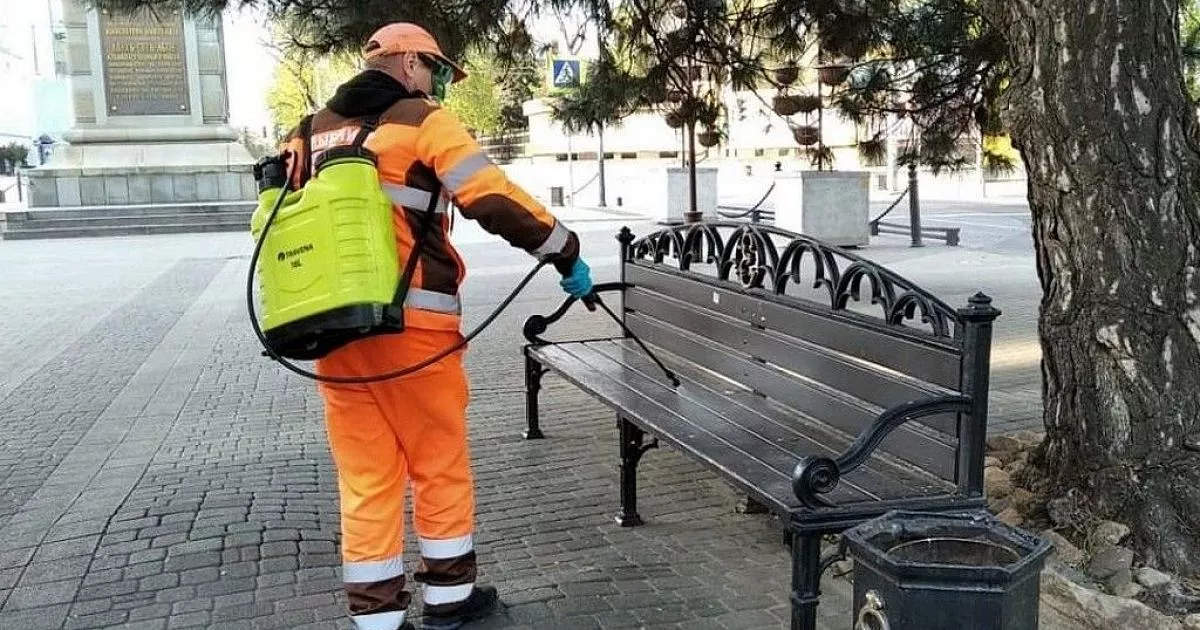 Несколько раз в день дежурные бригады - 60 человек с ранцами, наполненными дезинфицирующей смесью, обрабатывают остановочные комплексы, а также подземные пешеходные переходы, лавочки на бульварах и в скверах, детские и спортивные площадки.
