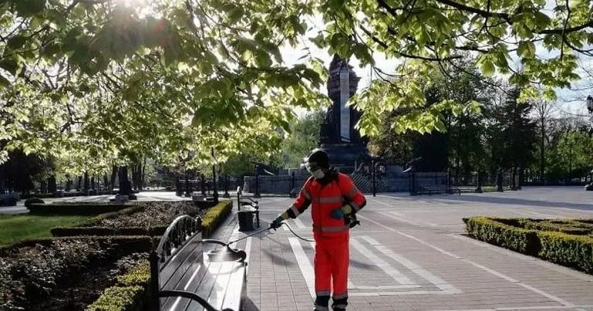 С применением дезинфицирующих и антисептических препаратов несколько раз в день обрабатывают весь городской общественный транспорт. Ночью восемь поливомоечных машин обрабатывают дороги и тротуары, с раннего утра 60 специалистов с переносными ранцевыми опрыскивателями дезинфицируют остановки общественного транспорта, скверы, подъезды домов, детские площадки.