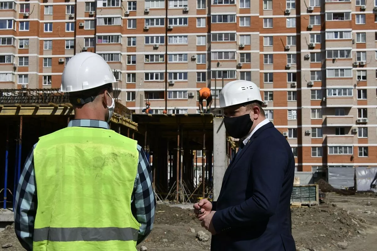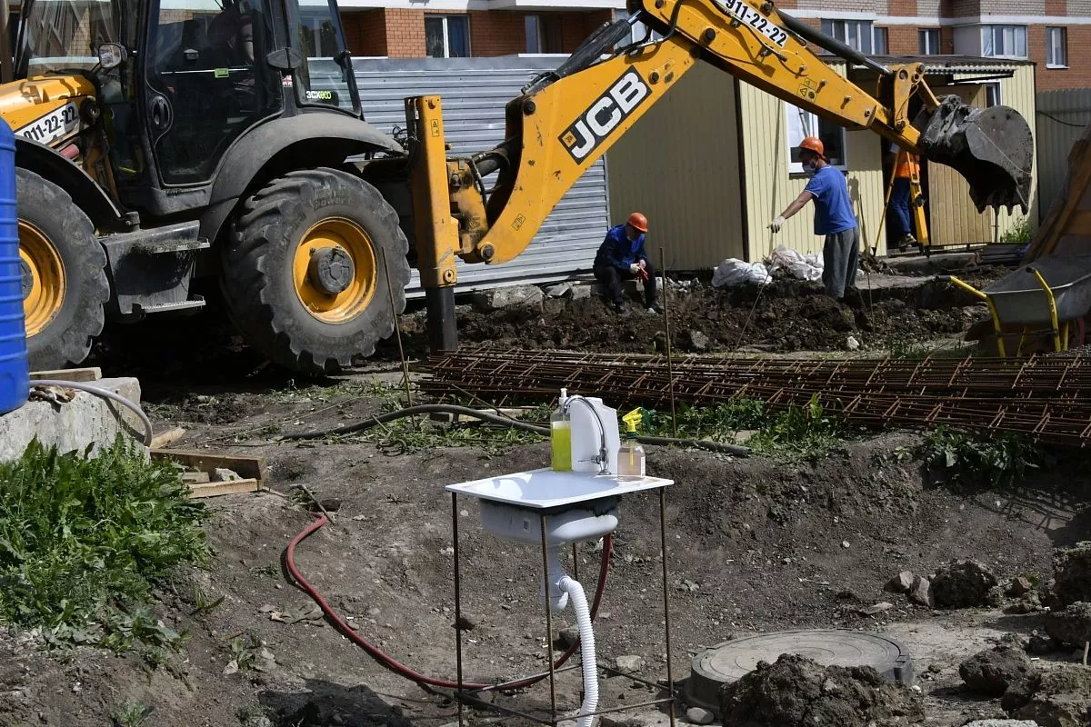В связи с режимом особой готовности по коронавирусной инфекции, который действует на территории всего Краснодарского края, на строительных площадках соблюдаются строгие меры безопасности. Каждый день перед началом работ всем, кто трудится на объектах, измеряют температуру, данные заносятся в специальный журнал. Строители работают в масках и перчатках, у всех есть рабочие пропуска.