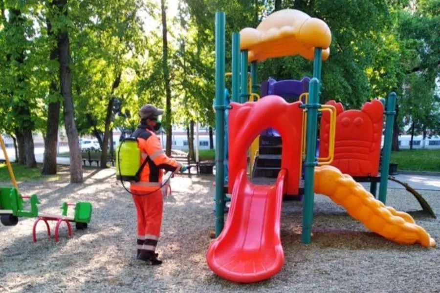 Начиная с ночи 28 апреля и с раннего утра 29 апреля, с применением дезинфицирующих средств обработали: