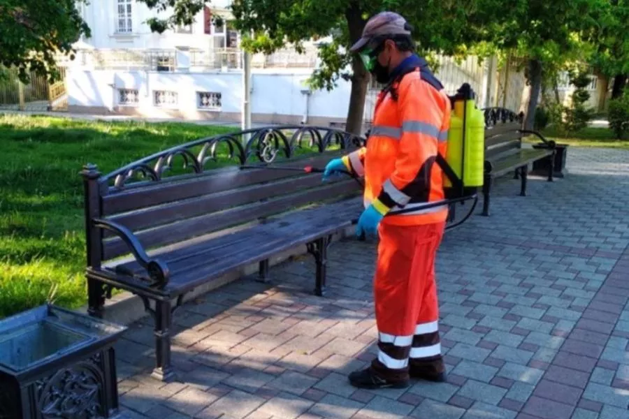 Масштабную дезинфекцию общественных пространств, дорог и тротуаров в Краснодаре ведут с 31 марта. На обработку каждый день расходуется порядка трех тонн дезинфицирующих средств.