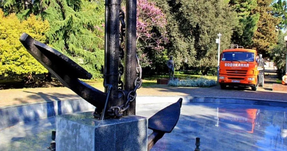 Фонтан с якорем в центре курорта восстановлен благодаря совместной работе муниципальных предприятий «Водоканал», «Водосток» и «Свет».