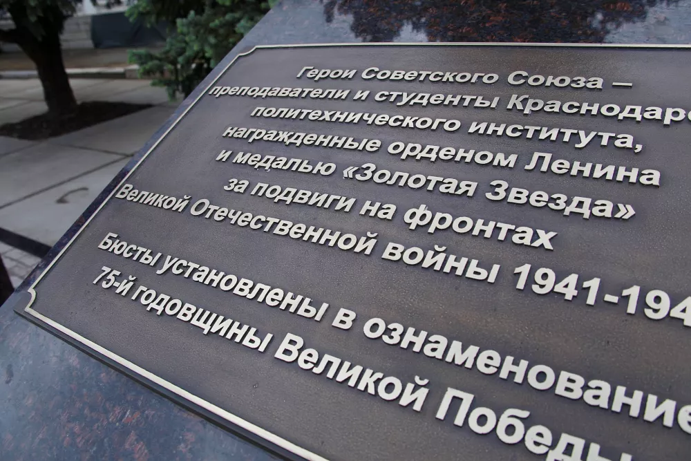 Накануне 75-летия Великой Победы в центре Краснодара открыли шесть бюстов — трёх преподавателей КубГТУ, героев Советского Союза.