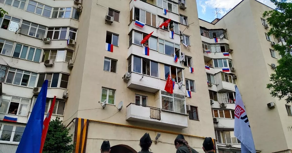 Так, жители многоэтажки на улице Красной, 156 исполнили знаменитую песню вместе с творческим коллективом.