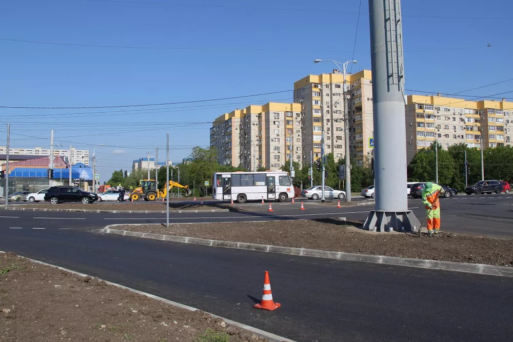 Работы по переустройству перекрестка улице Дзержинского и Кореновской и преобразованию его в кольцевую развязку почти завершены. Здесь уже сделали круговую двухполосную дорогу и заменили все светофоры.