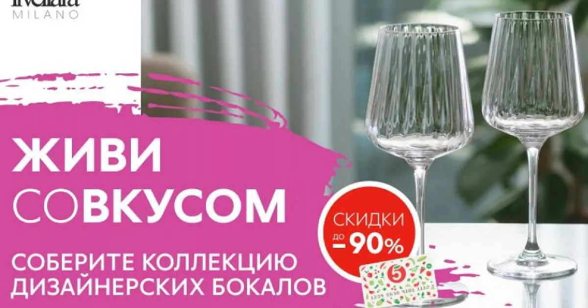 Торговая сеть «Пятёрочка» предлагает всем своим гостям собрать коллекцию дизайнерских бокалов от итальянского бренда Livellara Milano со скидкой до 90%.