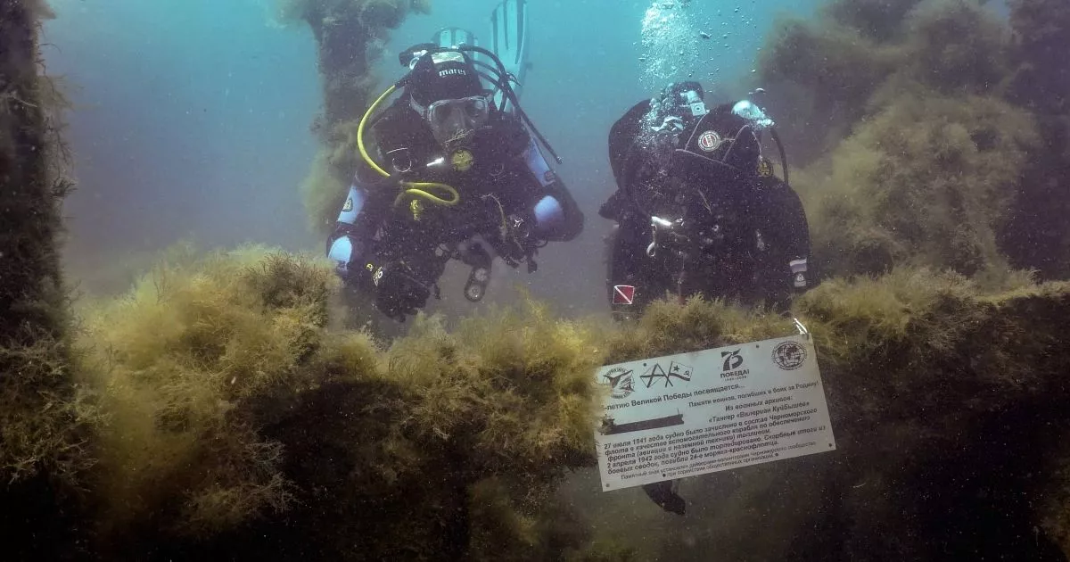Накануне Дня России в подводной акватории Черного моря вблизи Бугазской косы был установлен памятный знак на кормовой части танкера «Валериан Куйбышев».