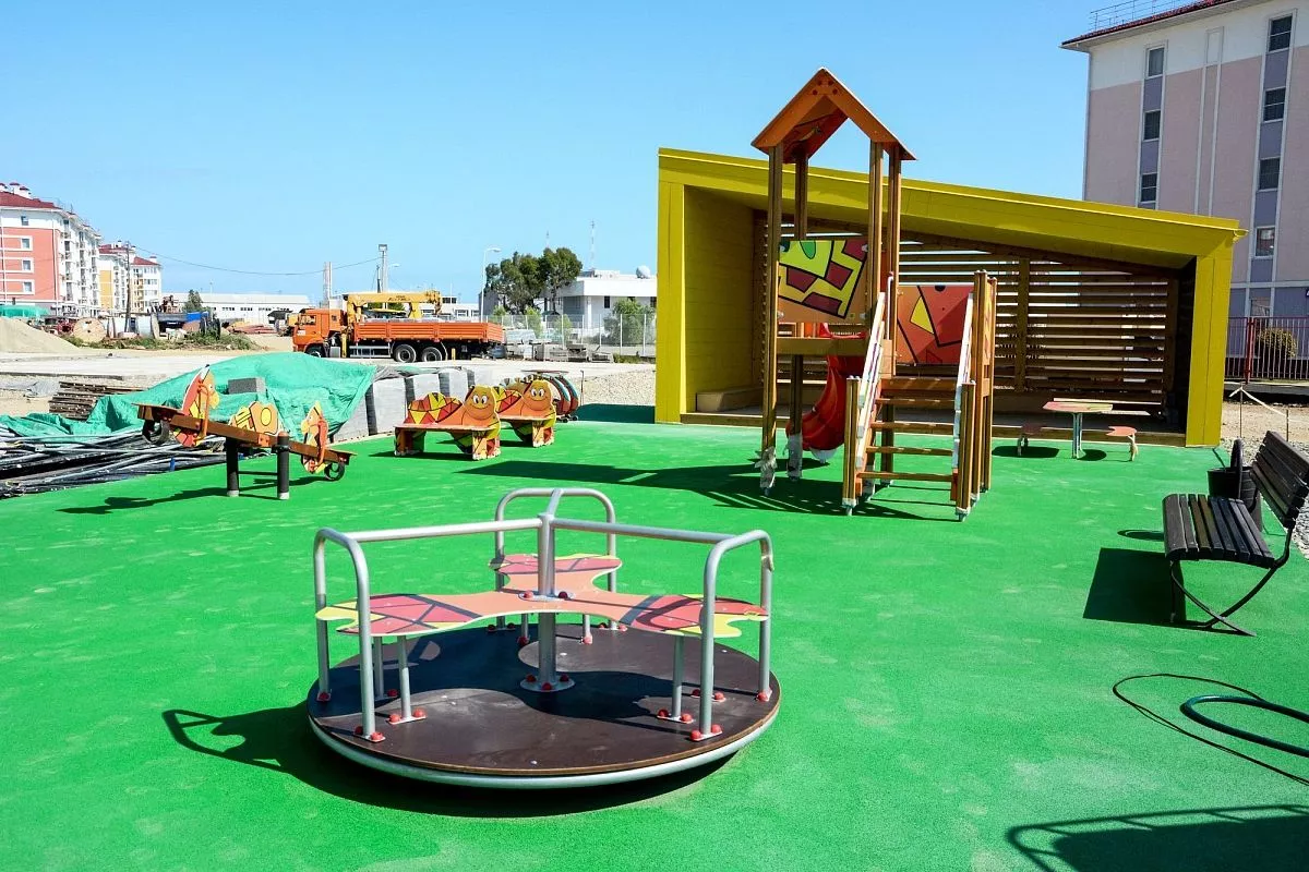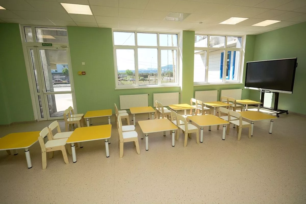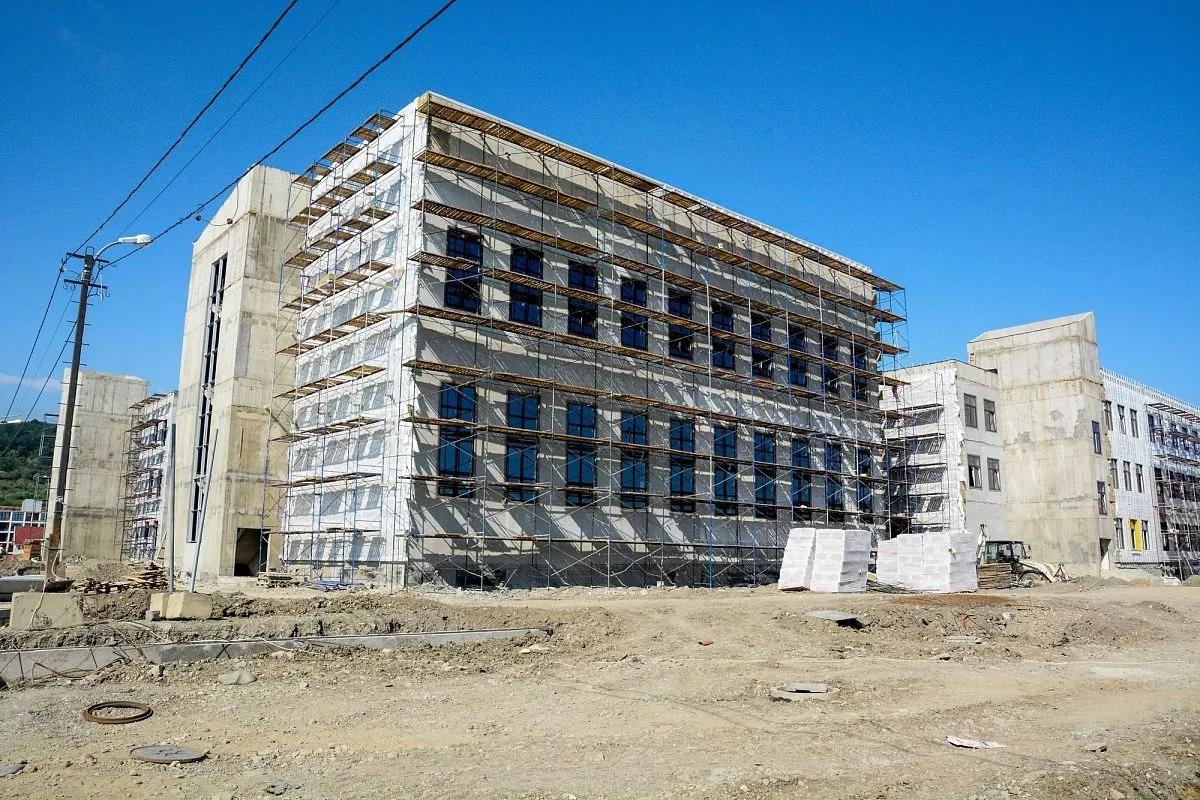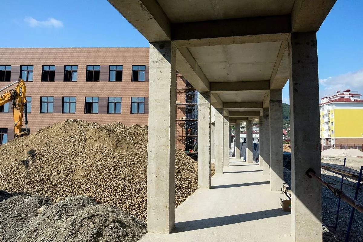 Строительство общеобразовательного комплекса в Сочи стартовало в августе 2019 года. На земельном участке площадью более 62 гектара возводятся школа на 1100 мест, бассейн и детский сад на 360 мест.