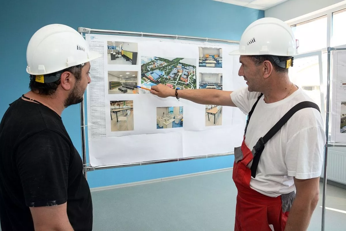 - Конструктив всех объектов завершен, ведутся отделочные работы и благоустройство территории. Предусмотренный госконтрактом срок ввода объекта в эксплуатацию – декабрь 2020 года. Планируется, что работы завершатся раньше, в августе этого года объект будет введен в эксплуатацию. Сейчас в здании детского сада ведется монтаж слаботочных систем, фасадной плитки и подвесных потолков, покраска и шпатлевание стен. В школе выполняется стяжка, отделка , монтаж сетей электричества и освещения, систем вентиляции и теплоснабжения. В бассейне проводится монтаж электропроводки, слаботочных систем, трубопроводов и кронштейнов на фасад, - сказал руководитель департамента строительства Краснодарского края Владимир Вареха.