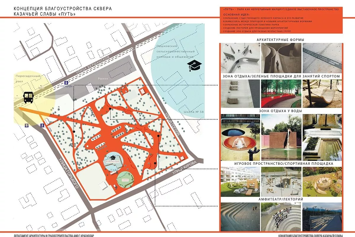 Городской департамент архитектуры и градостроительства разработал три проекта реконструкции зеленой зоны, расположенной в Пашковском жилом массиве: «Место встречи», «Назад в будущее» и «Путь».