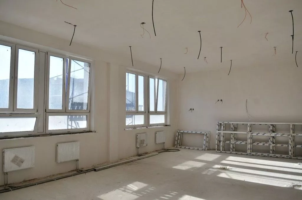 Сейчас в здании ведут работы по штукатурке стен, стяжке полов, монтажу каркасных перегородок, инженерных сетей — электроснабжения, водоснабжения и водоотведения, отопления и вентиляции. Работают свыше 200 человек, задействовано шесть единиц техники. Строительная готовность составляет 65%.