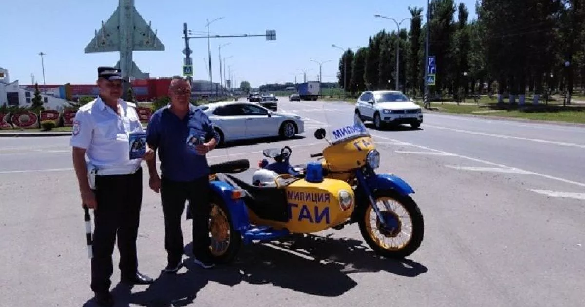 Майор полиции в отставке, бывший старший инспектор ДПС по Кореновскому району Александр Крайнев отреставрировал старый мотоцикл, нанес на него цветографические надписи старых времен и в сопровождении сотрудников дорожной полиции доставил раритетную технику на одну из оживленных улиц района, чтобы наглядно показать, как работали первые инспекторы ДПС.