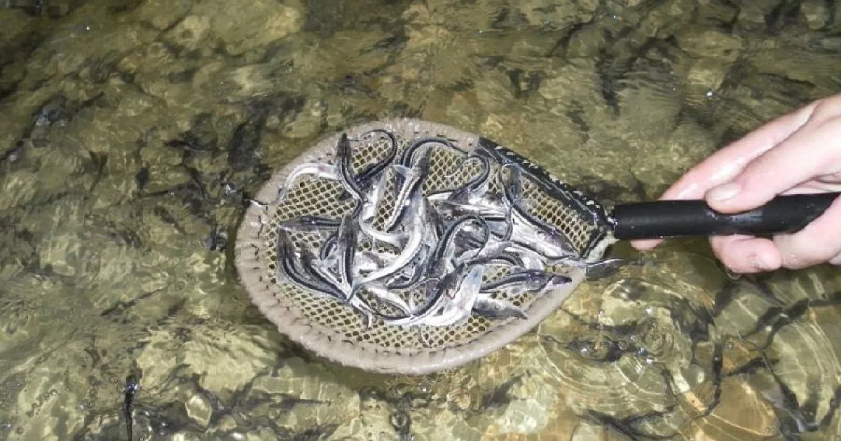Ниже плотины Краснодарского гидроузла были выпущены пять тысяч особей севрюги.