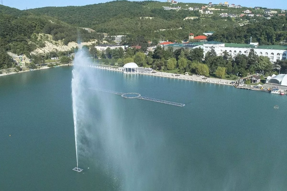 В Абрау-Дюрсо есть уменьшенная копия знаменитого швейцарского фонтана Же-До, установленного в акватории Женевского озера. Фонтан расположен посреди озера Абрау в 145 метрах от берега.