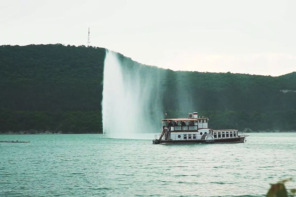 Струя, направленная ветром, распадается на бесчисленное множество капель, из-за чего в солнечную погоду гости курорта могут любоваться радугой как с набережной, так и во время прогулки на лодке или паруснике. Вечером водяной столб подсвечивается светодиодными прожекторами. За игрой воды, воздуха и солнца можно наблюдать ежедневно.