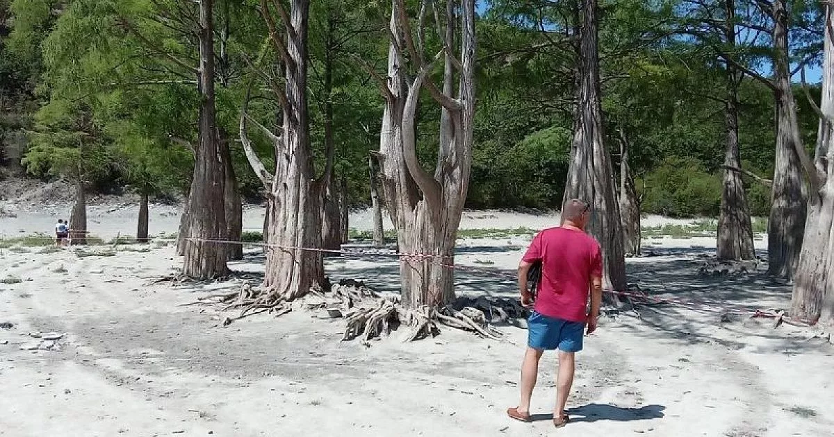Из-за засушливого лета водоем в поселке Сукко, где произрастает «Кипарис болотный», полностью пересох. Туристы, которые раньше рассматривали природный объект издалека, теперь подходят близко к деревьям.