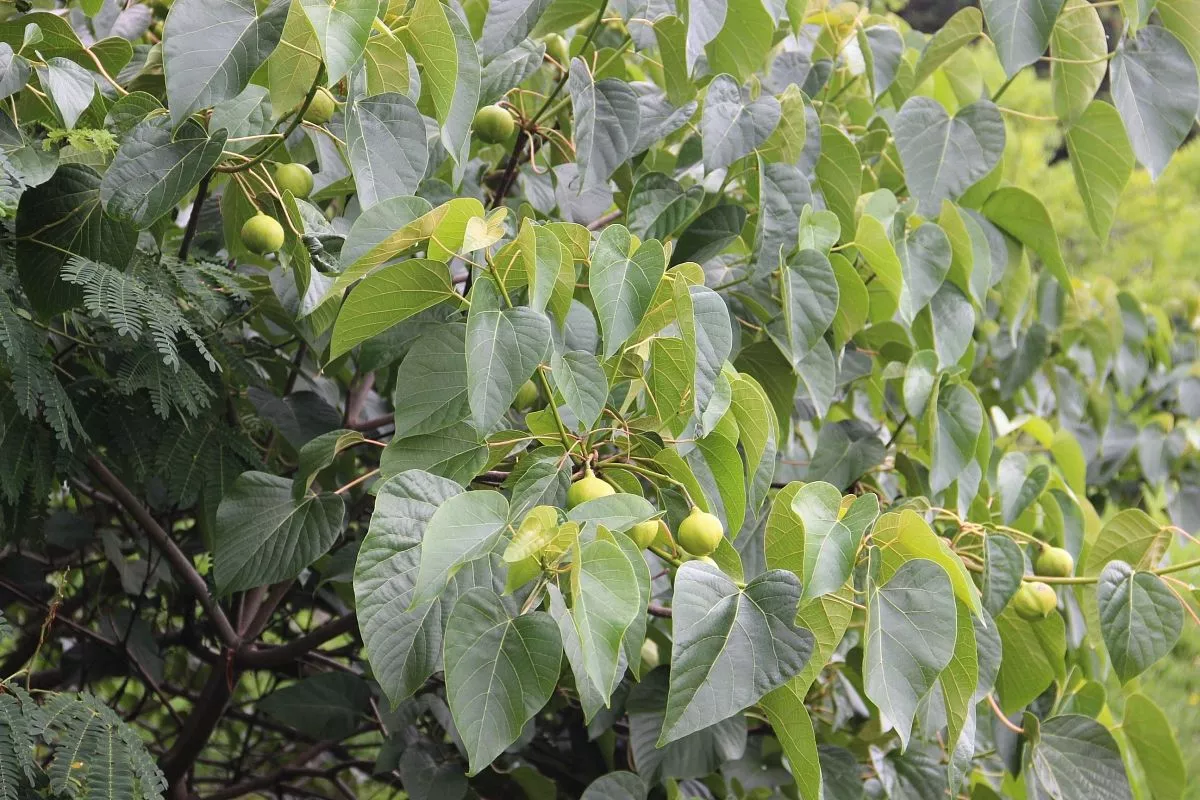 В администрации ФГБУ «Сочинский национальный парк» рассказали, что тунговое дерево завязывает плоды в летний период. Они растут в пучках от трех до пяти штук и свешиваются на длинных плодоножках. Диаметр каждого плода – не больше 6-8 сантиметров.