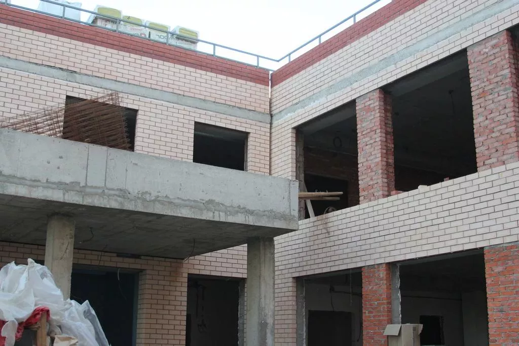 На сегодняшний день на объекте работают 58 человек и две единицы техники. Все монолитные работы завершены, выполняются работы по устройству теневых навесов, внутренней отделке помещений, проводятся работы на сетях.