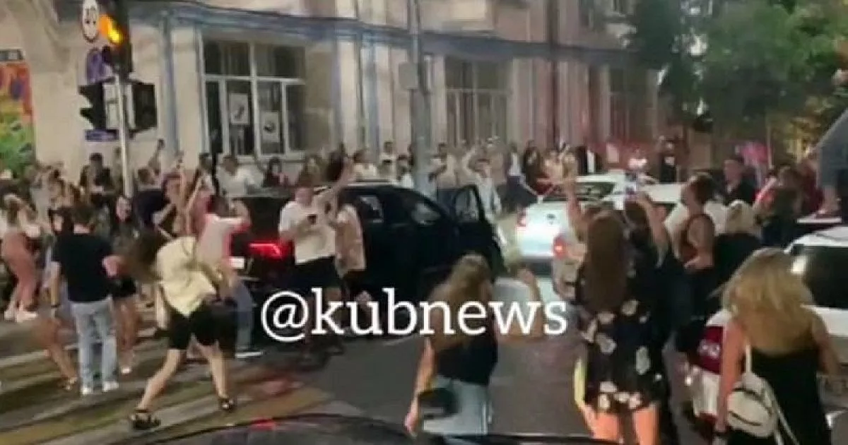 В центре краевой столицы местная молодежь фактически перекрыла улицу. Десятки людей под громкую музыку танцевали прямо на проезжей части, некоторые – на припаркованных автомобилях.