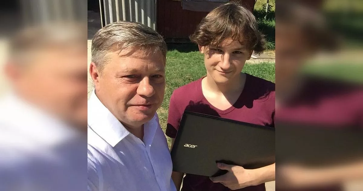 Сопредседатель регионального штаба ОНФ в Краснодарском крае, руководитель краевого отделения ДОСААФ подарил школьнику ноутбук.