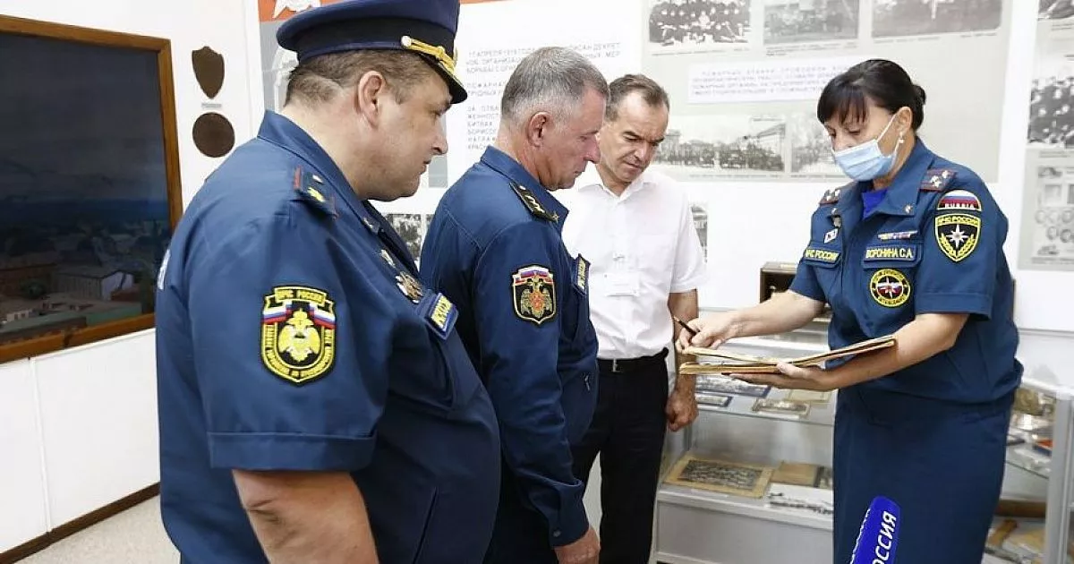 Также глава МЧС России и губернатор края посетили историческую выставку, организованную в здании МЧС. Региональное управление ведомства сотрудничает с министерством образования, науки и молодежной политики Кубани. Посещение пожарно-технической службы входит в программу уроков ОБЖ краснодарских школьников.