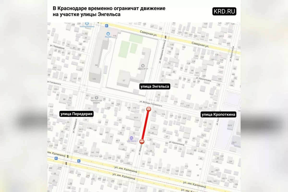 По ул. им. Энгельса в краевом центре, на участке от дома № 53 до дома № 36, продлевают ограничение движения транспорта до 20 ноября — для проведения работ в рамках реконструкции канализационного коллектора.