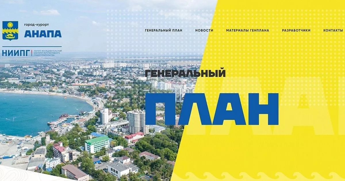 Специалисты Научно-Исследовательского Института Перспективного Градостроительства из Санкт-Петербурга приступили к первому этапу проекта нового генерального плана города-курорта - сбору исходных данных и их предварительному анализу. Для это цели создан специальный сайт генплан-анапа.рф, который позволит каждому жителю города внести свой вклад в будущее курорта, принять непосредственное участие в улучшении среды и качества жизни на территории.