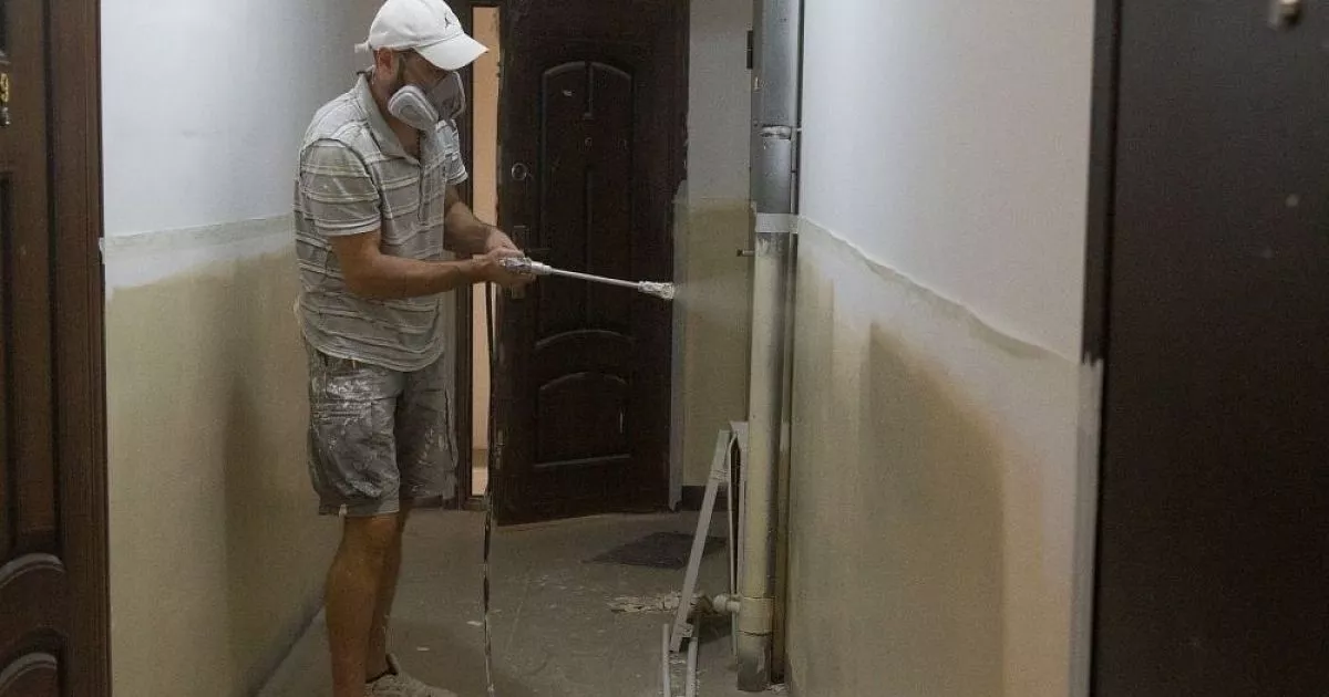 Параллельно приводят в порядок места общего пользования. В преддверии возможных дождей на конструкциях закрепят изоляционную пленку - она должна защитить открытые блок-секции, где ведут работы, от осадков.