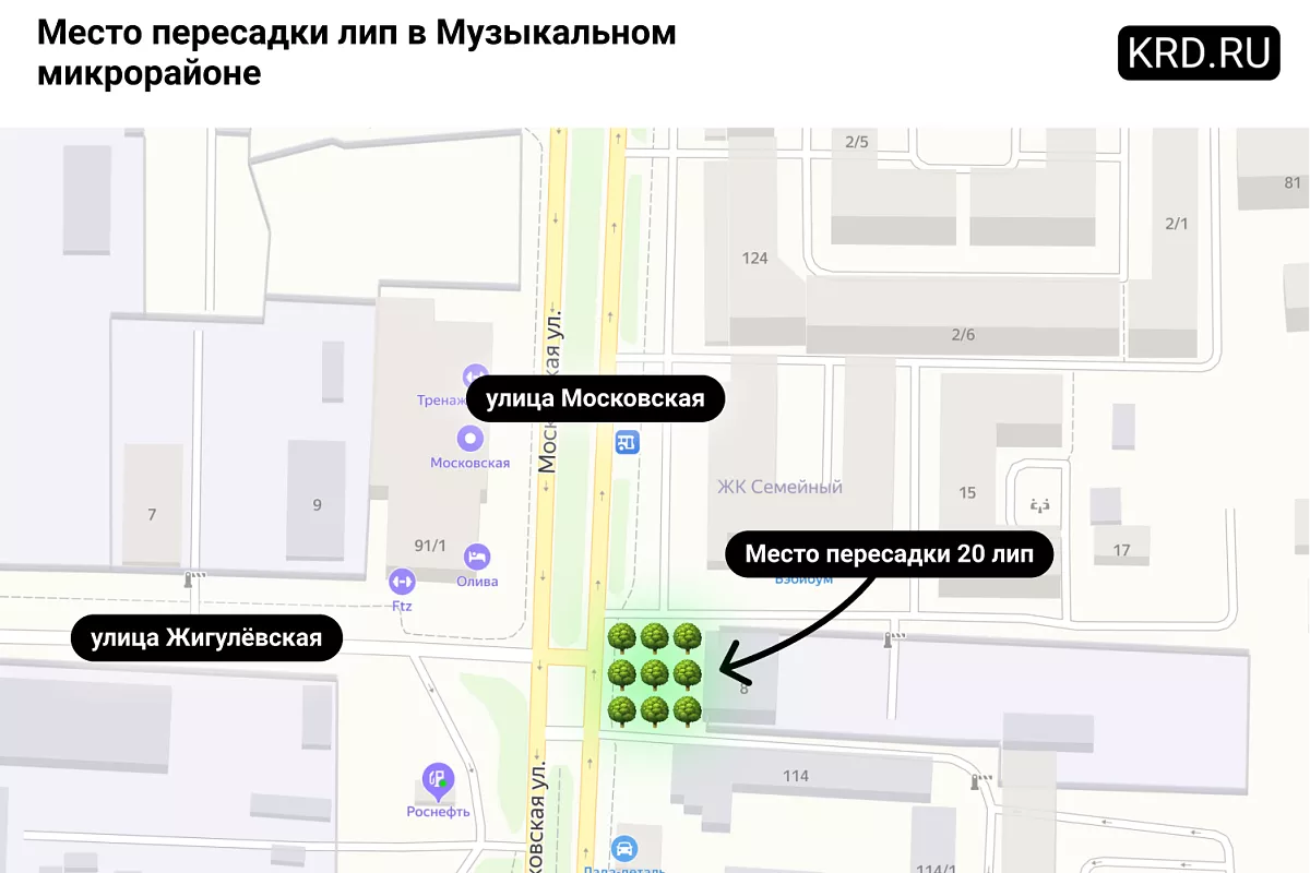 По предложению мэра города Евгения Первышова, жители подавали заявки на пересадку лип с улицы Московской в своих дворах или на общественных территориях Музыкального. Специалисты МКУ «Центр озеленения и экологии» обследовали все предлагаемые жителями участки. В итоге выбрали одну территорию по улице Московской, куда пересадят сразу 20 лип.