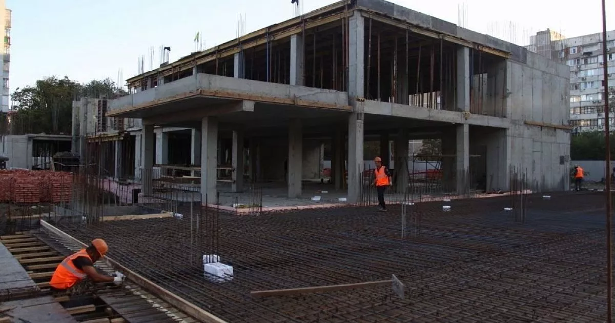 Строительство блока начальных классов стартовало в марте. Сейчас идут монолитные работы. Работы организованы в одну смену — с 07.00 до 22.00.