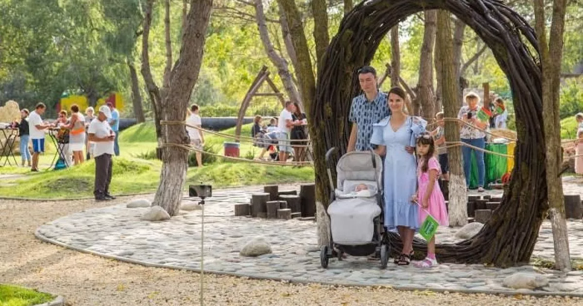 В парке есть фотозоны, скамейки, миниатюрные детские городки, игровые зоны. К примеру, здесь можно сыграть партию в каменные шашки.