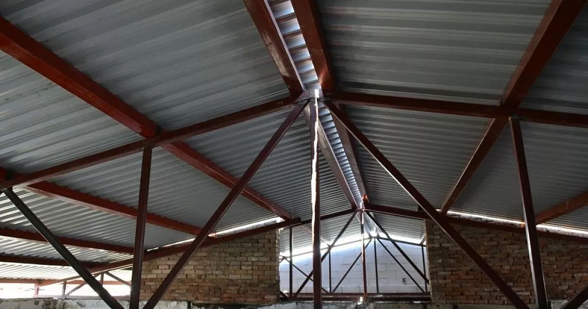 На техническом этаже завершают монтаж кровли угловых секций, остальные уже готовы. После проведенной огнезащиты материала для козырьков 7 этажа, монтируют профнастил и каркас подшивы кровли по внешнему периметру.