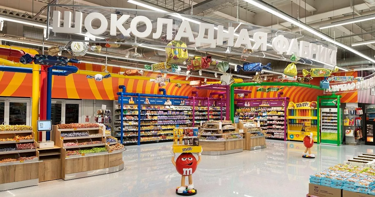 Дизайн выполнен в стиле шоколадной фабрики, созданы уникальные зоны по проектам ведущих поставщиков, появилось кафе, интегрированы цифровые сервисы. В ассортименте почти 25 тысяч позиций с фокусом на свежую продукцию, локальных производителей, товары для сбалансированного питания.