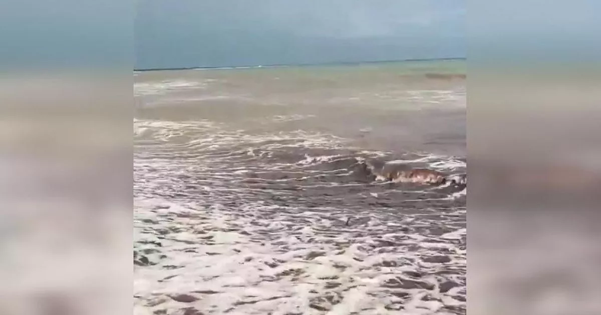 Водоросли изменили цвет воды на пляже «Алексино». Видеоролик, на котором запечатлено явление, появился в социальных сетях.