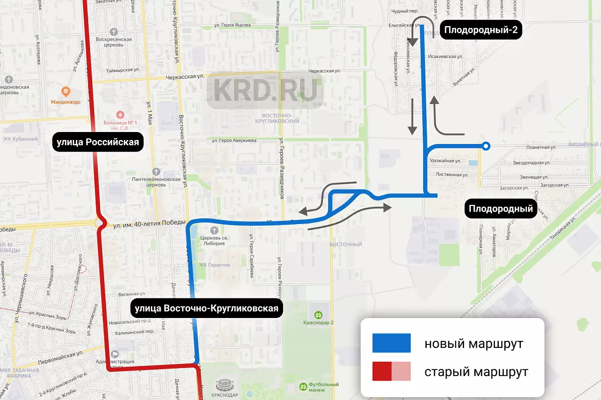 Маршрут будет пролегать от поселка Плодородного по улицам Александровской, Елисейской, далее — по улице